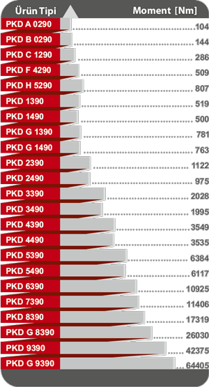 PGR, PKD serisini farklı tahvil oranları ile 11 farklı gövde büyüklüğünde hizmete sunmaktadır. Bu gövdeler de ayaklı ve gövdeden montajlı olmak üzere 2 ana gruba ayrılır. PKD serisi, kullanıcılara yapısında bulunan konik dişlilerle kendisine verilen hareketin devrini düşürerek hareketi 90 derece çevirip aktarımını sağlar. Yekpare gövde tasarımı PKD serisinde sağlam bir gövde yapısını sağlayarak dişliler arası eksen kaçıklığına neden olabilecek bağlantı elemanı (vida vb.) içermez.